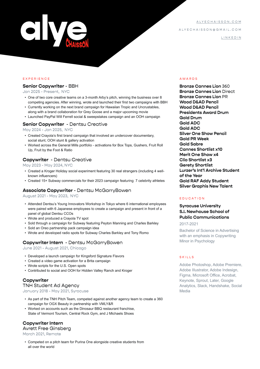 Q - What are your hobbies outside of advertising, Alye pronounced Ali?